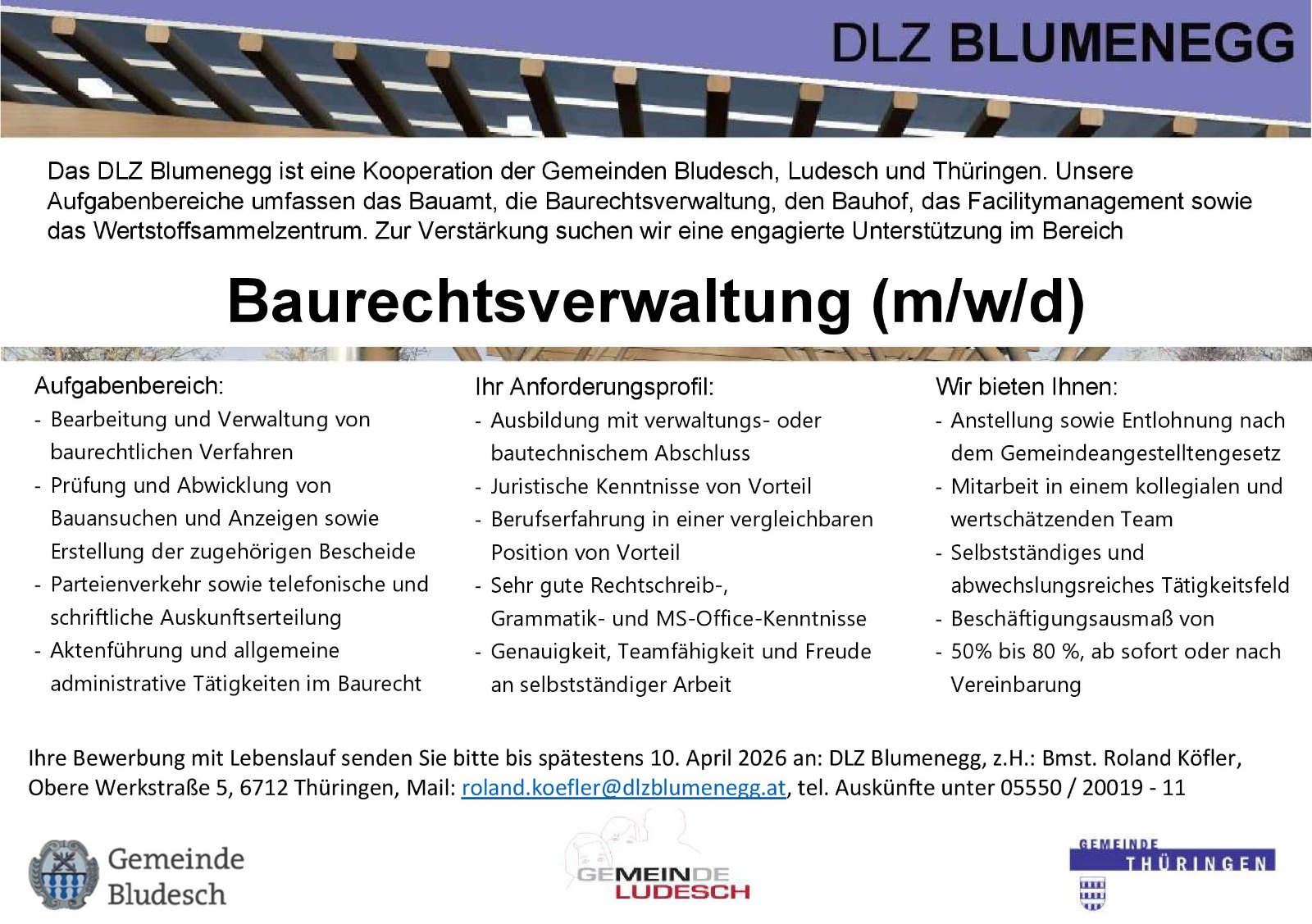 Das Bauamt im DLZ Blumenegg ist bis 7. Jänner 2026 geschlossen.